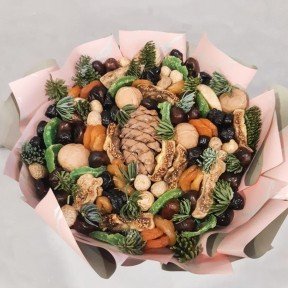 Съедобные букеты из продуктов на любой вкус: от фруктов и сухофруктов до разных видов колбас и сыра