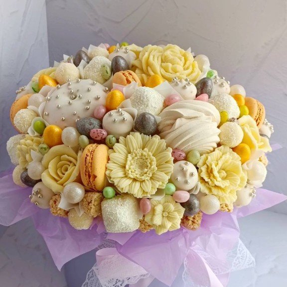Светлана заниматся составлением композиций и букетов из сухофруктов, орех, шоколада, конфет, мясные и сырные букеты.
