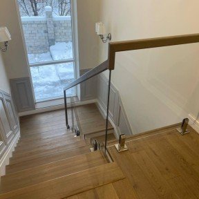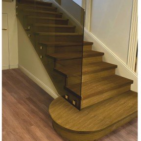 - Проверенная годами технология по изготовлению и установке стеклянных ограждений и обшивке лестниц деревом.