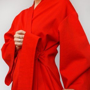 Ольга создает кимоно, платья, брюки, юбки и жилетки, уделяя особое внимание выбору тканей с необычной текстурой и формой.