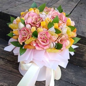 Светлана заниматся составлением композиций и букетов из сухофруктов, орех, шоколада, конфет, мясные и сырные букеты.