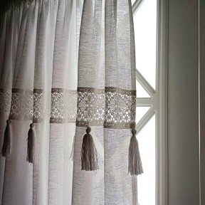 Людмила Смирнова более 15 лет занимается пошивом штор и приоритет отдает натуральным тканям: лён, хлопок. В сочетании с шикарным хлопковым кружевом - получается стильные решения для загородного дома и уютной квартиры.