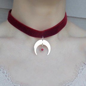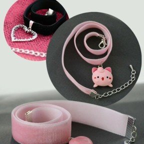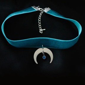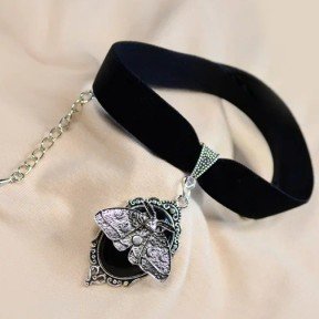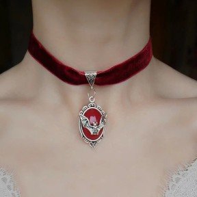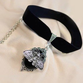 В ассортименте представлены чокеры на бархатной ленте с разнообразными кулонами.
