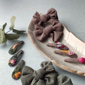 Бренд производит детские аксессуары для волос - повязки для новорожденный, бантики, заколки с вышивкой и без, шапочки-тюрбаны.