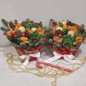 Съедобные букеты из продуктов на любой вкус: от фруктов и сухофруктов до разных видов колбас и сыра