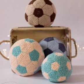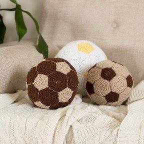 Мастер производит вязаные футбольные мячики, представленные в трёх размерах и в разнообразной цветовой палитре. Их можно использовать как подушку или игрушку для ребенка. Гармонично впишутся в декор комнаты подростка. Разнообразят интерьер фотостудии и прекрасно подойдут в качестве подарка.