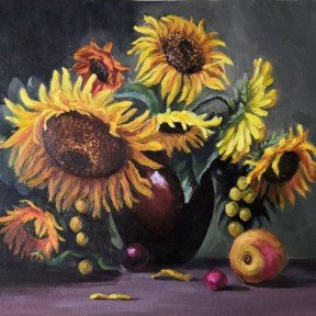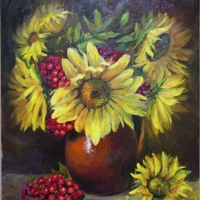 Занимается изготовлением портретов на заказ, натюрмортов, интерьерных картин, рисует индивидуальные открытки акварелью и маркерами.